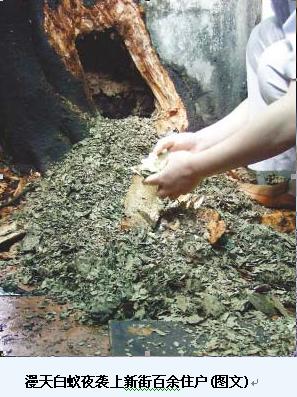 研究所副所長周兵介紹,前驅路發現的白蟻屬家白蟻,習慣晚上在室內活動,以紙張、布匹等木質纖維為食。每年五六月份,家白蟻幼體成熟時便有一部分飛出巢穴,建立新群。